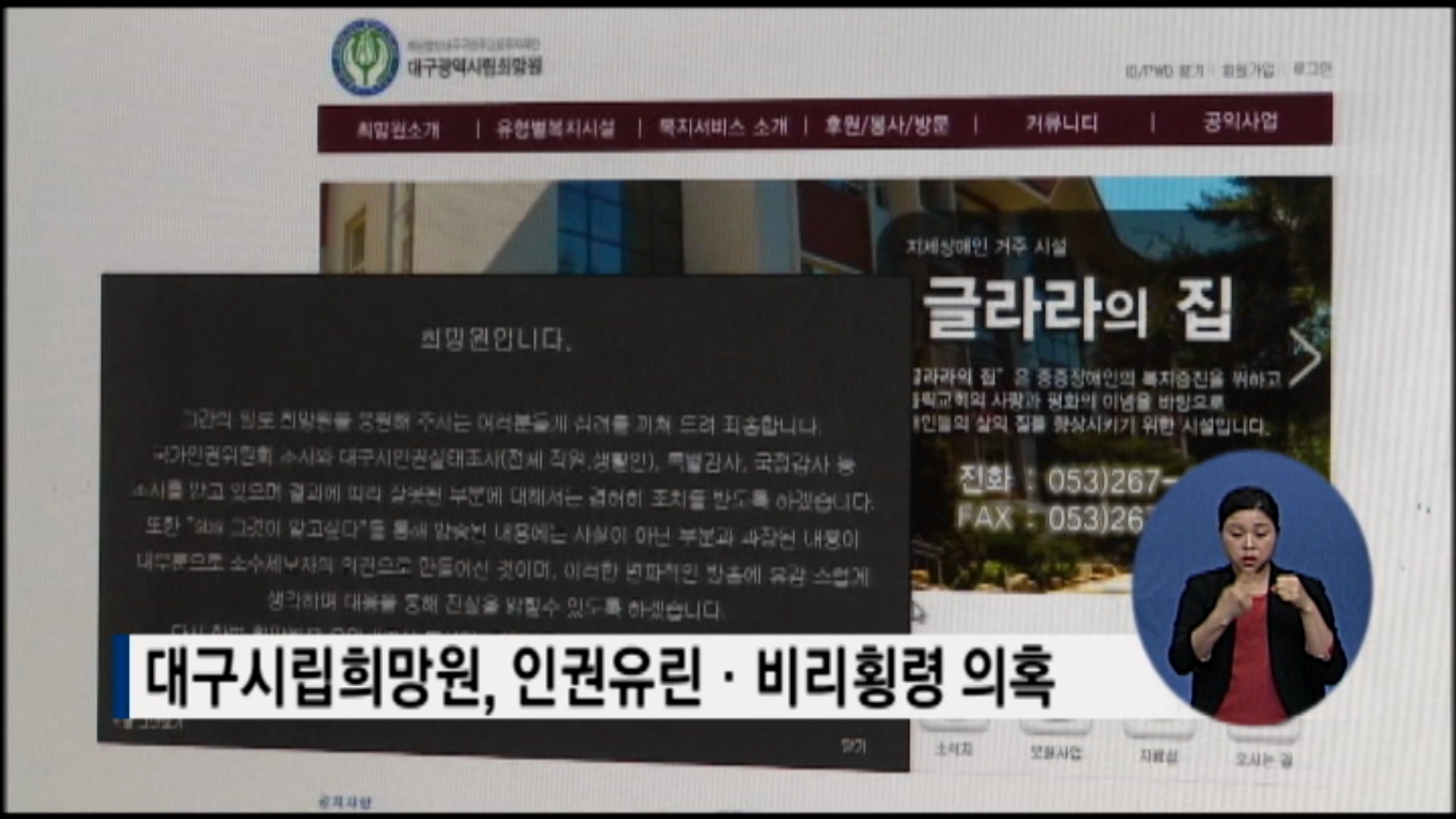 이 시설은 바로 국내에서 세 번째로 규모가 큰 대구시립희망원으로, 최근 2년 6개월 동안 시설 생활인 129명이 사망했습니다. 또한 시설 거주 노숙인들은 시설내 경비, 간병인 등의 일을 하며 시급 1,000원도 받지 못했습니다.