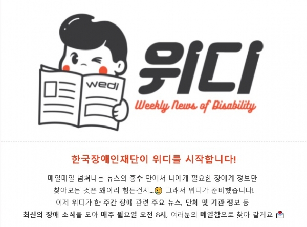 한국장애인재단은 4일 주간장애뉴스 전자우편 서비스 ‘위디(wedi)’를 시작했다고 밝혔다.